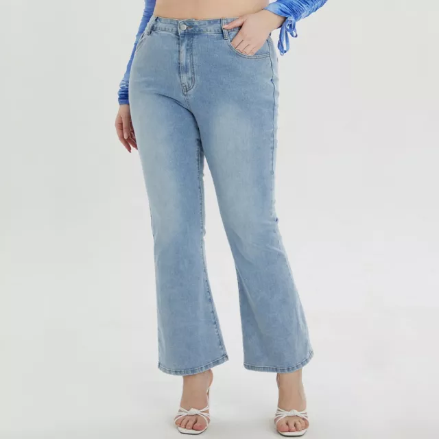 Plus Size High-Waist 100% Cotton Straight Jeans for Women – Winter Casual Warm Pants